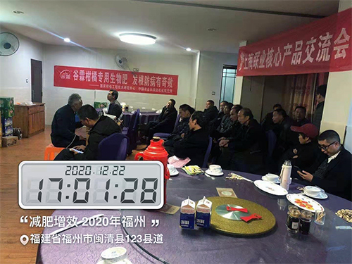 12月22-24日,应福州市邓老板邀请,上海联业江西公司总经理王忠明与赣南脐橙王黄重德老师分别参加了在闽清县和连江县的谷霖生物有机肥、根千条产品推介会,并在会上介绍了公司的系列生物有机肥和功能性水溶肥料等产品。