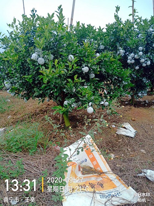 易普朗硅钙镁在茂谷柑上的使用,与往年同期相比落果和裂果的情况几乎没有!试验证明易普朗硅钙镁是一款不但可以改良土壤提高作物生长环境同时有效的补充了柑橘缺少的两个重要元素钙和镁并且促进果实高效吸收。