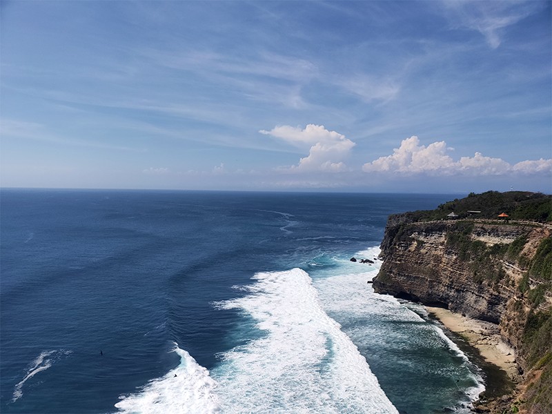 乌鲁瓦度断崖又称情人崖,位于巴厘岛最南端,是最负盛名的悬崖峭壁。传说当地有对门户不当的青年男女相恋,女方的父亲是村长,因此两人的爱情得不到任何祝福,在绝望之下双双投海殉情。民间传说赋予了断崖如此凄美的故事,为它平添了一份离奇的色彩。