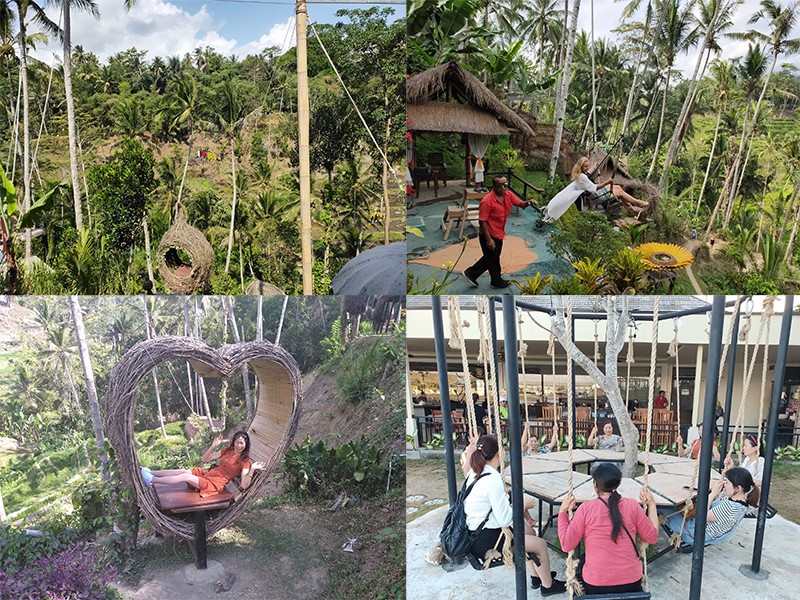 乌布皇宫,又称“五步皇宫”,看皇宫里面的表演。吃过外酥里嫩的“脏鸭餐”,马不停蹄前往Bali Swing,火爆Internet上的网红打卡必备景点,有几个不同长度的大秋千、鸟巢、鸟蛋,坐在上面荡应该很刺激很惬意吧!