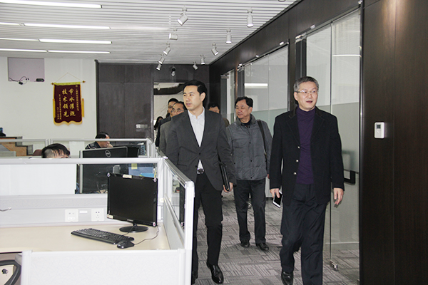 2018年12月21日上午,普陀区副区长杨元飞在桃浦镇党委书记方维吾陪同下一行六人来到上海联业总部进行专题调研。张国勤董事长陪同杨元飞副区长一行,参观了总部及研发项目。