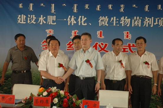 经过一段时间的积极工作,公司与通辽市开鲁县人民政府就“水肥一体化”投资项目达成一致,并于2012年7月9日在开鲁县第一宾馆会议室举行了隆重的签约仪式。到场的嘉宾有通辽市副市长贺海东、开鲁县县长张华、通辽市农牧局副局长何长福和市长陪同人员以及开鲁县全体班子成员和各主管局局长,我公司出席签约仪式的人员有董事长张国勤、董事长助理刘东海、内蒙古公司总经理张明辉和公司其他相关部门经理。签约仪式中,贺海东市长和张华县长以及张国勤董事长分别发表了热情洋溢的致辞,其中贺市长大力推荐我们申请通辽市的科技创新基金,张华县长更是信心满满的邀请我们多多参与本县的水肥一体化项目实施,为当地农民造福、为当地的农业现代化贡献力量,张国勤董事长也表达了公司会在今后的事业中踏踏实实,绝不辜负各级领导对企业的关心与厚爱。