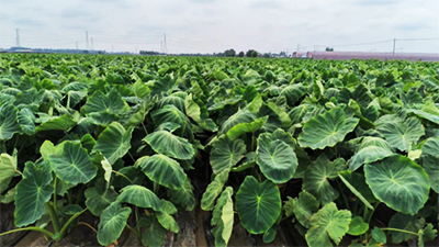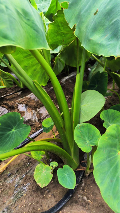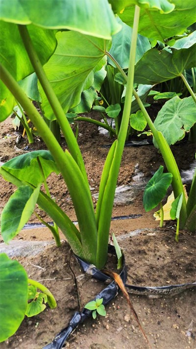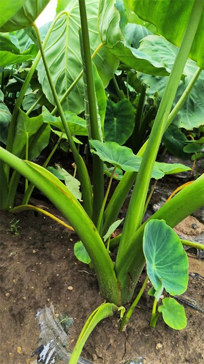 使用效果:产品使用半个月后,芋头整体长势较旺,对比未使用地块,茎部表现粗壮,叶片较厚且颜色为深绿色,叶片边缘干枯现象很少。由于前段时间高温干旱且作物生长状况良好,对比未使用地块,本产品增强作物的抗病、抗旱、抗涝、抗寒、抗盐碱的能力非常突出。