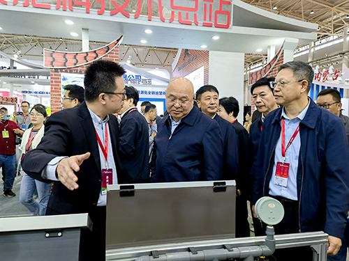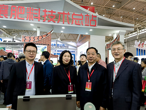 农业农村部总农艺师、种植业管理司司长潘文博,全国农业技术推广协会会长陈生斗等领导莅临上海联业展位详细了解公司在新技术、新产品研发与推广方面的具体情况,潘司长与公司董事长张国勤亲切握手,并对公司致力于推动新型肥料、助力化肥减量增效,给予了充分肯定与高度评价。