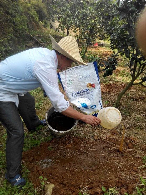 7月14日,江西联业农业开发有限公司人员来到脐橙种植基地,对该县袁老板与刘老板的脐橙基地进行现场走访。在现场了解到脐橙的长势与土壤情况后,公司人员同种植户进行了交流与沟通。因该果树根系较差,土壤贫瘠,针对这种情况,我们向脐橙种植户袁老板与刘老板推荐了谷霖(第3代)生物有机肥、根千条、果力美等产品进行示范。